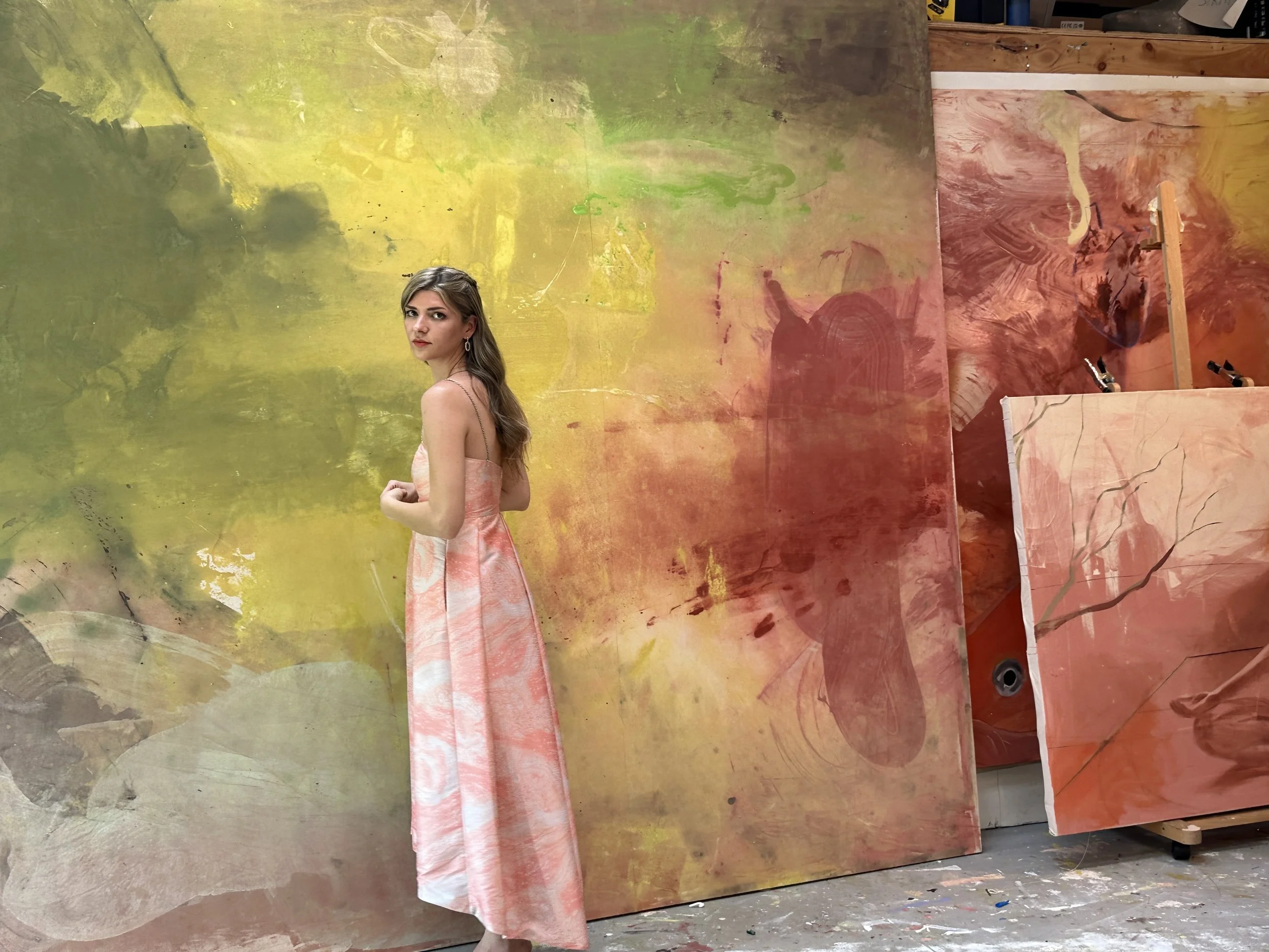 Isadora Capraro (b. 1994, Italy) received a classical art education in Buenos Aires before relocating to the United States. Her large-scale, emotionally charged paintings explore subconscious imagery, personal mythology, and psychological space.